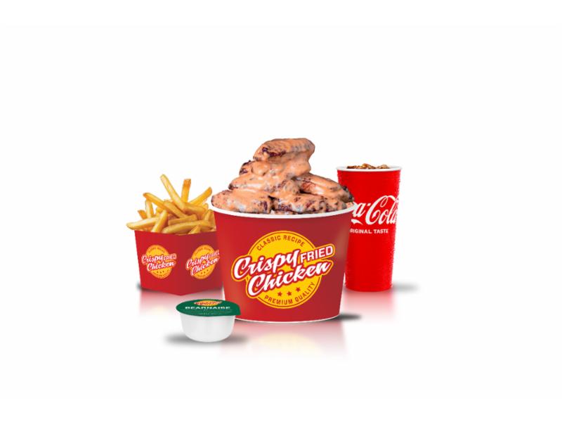 Grillede kyllingvinger med hot sriracha glaze. Alle våre Meals inkluderer CFC Fries, valgfri 0,5l brus/vann og valgfri dip. Allergener: EGG