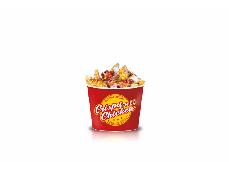 Sprø CFC Fries toppet med vår digge Garlic Parm-dressing, bacon, jalapeños, hakket rødløk, sprøstekt løk og to chopped CFC Tender fileter. Serveres med gaffel.Allergener: GLUTEN (hvete), SOYA, MELK, EGG, SENNEP, SELLERI